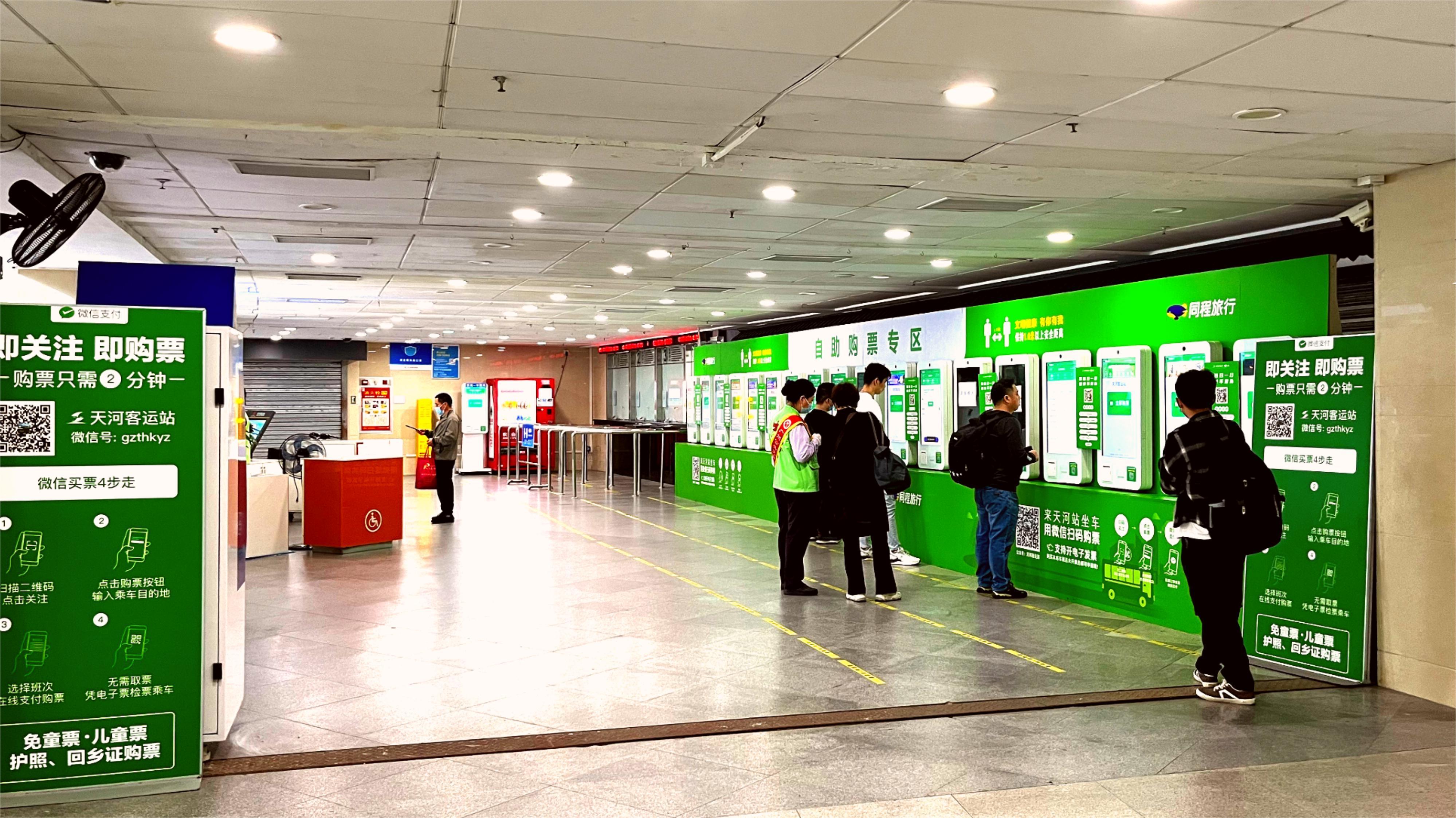 为方便老人或者不方便使用智能手机的市民购票,该站在一楼售票厅保留了人工窗售票窗口。该站微信公众号和天客出行平台小程序均可在线直接查看班车线路、班次时间、票价、剩余票量等实时信息,同时具备在线办理退、改票服务功能。